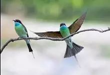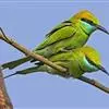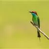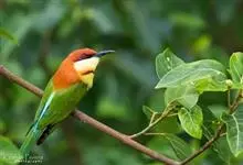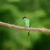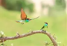 绿喉蜂虎是佛法僧目、蜂虎科的小型鸟类,共有9个亚种。身长22-25厘米,翼展29-30厘米,体重15-20克。喉绿色,额部、头顶至上背为锈红色,其余上体均为亮绿色。中央尾羽延长且端段狭细,…全部>>