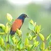 褐翅鸦鹃,是鹃形目鸦鹃科鸦鹃属的鸟类。褐翅鸦鹃的身体为黑色;头颈和胸带蓝紫色金属光泽并具黑亮的羽干纹,下胸至腹部泛金属绿光泽;两翼和肩部为棕栗色,外侧飞羽具暗色羽端,尾羽闪铜绿色光泽;虹膜赤红色,…全部>>