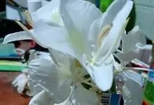 姜花又名野姜花。是姜科姜花属的多年生草本植物,茎高1-2米;叶片长圆状披针形或披针形,叶面光滑,叶背被短柔毛;穗状花序顶生,椭圆形,花芬芳,白色;蒴果卵状三棱形,微黄绿色;种子鲜红色,具橘红色的假种皮。…全部>>
