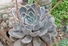 蓝石莲是景天科、拟石莲花属的多肉植物。茎部粗壮,成熟植株茎部木质化。叶片莲座型密集排列,株径不会很大,叶片相对较薄,常年绿色,表面布有白色粉末,中部凹陷,呈倒水滴状。叶尖较尖,叶缘光滑无褶皱,…全部>>