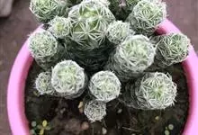 仙人掌科乳突球属原产墨西哥,通常单生,茎圆桶形,径粗9-10cm,高25-30cm,深绿色。棱13-21,放射刺20-30,中刺7-15,长2cm,红褐色。花色紫红。喜温暖干燥和阳光充足环境。较耐寒,…全部>>
