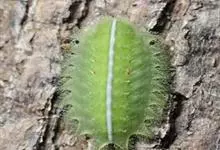 中国绿刺蛾又名褐袖刺蛾、小青刺蛾,是属于刺蛾科绿刺蛾属的一个物种。成虫体长约12mm,头、胸及前翅绿色,翅基与外缘褐色,后翅灰褐色。卵椭圆形,黄色。幼虫老熟时体长15~22mm,体黄绿色,茧椭圆形,…全部>>
