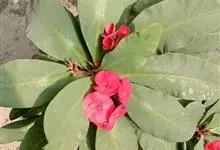 铁海棠为大戟科大戟属蔓生灌木植物;茎多分枝,具纵棱,呈旋转状;叶互生,通常集中于嫩枝上;每个花序基部边缘具微小的红色尖头;苞叶先端圆且具小尖头,无柄,上面鲜红色,下面淡红色;苞片丝状;子房光滑无毛,…全部>>