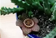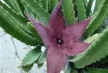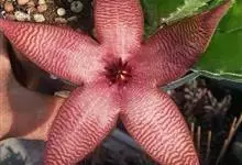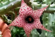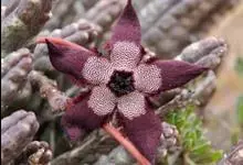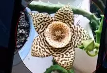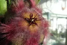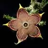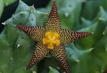 巨花犀角又称大豹皮花,是夹竹桃科犀角属的一种植物。茎粗,花大,边缘生长细毛。植株柱形多分枝呈丛生,柱形具4棱,棱缘具细小疣突。花大,五角星形黄色,并有横向棕褐色斑纹,似豹皮而得名。花期夏秋两季。…全部>>