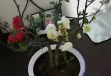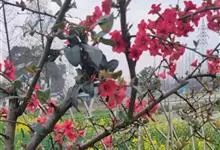 贴梗海棠Nakai)是蔷薇科、木瓜海棠属植物。落叶灌木,高达2米,枝条直立开展,有刺。叶片卵形至椭圆形,稀长椭圆形,长3-9厘米,宽1.5-5厘米。花先叶开放,3-5朵簇生于二年生老枝上。…全部>>