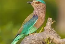 蓝胸佛法僧中型鸟类,体长31~33厘米,通体淡蓝绿色。翅膀长而宽,除栗色背羽外大部分为蓝色。额、眼先、耳羽淡褐色;头顶、颊、腰淡蓝绿色。背、肩、最内侧数枚飞羽沙棕色。翼覆羽绿蓝色,小,…全部>>