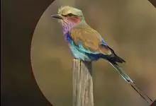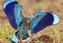 棕胸佛法僧是佛法僧科佛法僧属中型鸟类,体长32~35厘米。黑色的嘴细而下弯。头顶暗蓝色,喉、上背及部分飞羽淡紫;上胸葡萄紫色,具蓝色中央纹,下胸葡萄褐色,腹和尾下覆羽淡蓝色。腰蓝紫色,尾上覆羽辉蓝色。…全部>>
