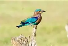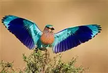 三宝鸟,是佛法僧目佛法僧科三宝鸟属中小型攀禽。成鸟通体为富有光泽的墨蓝绿色,头大而头顶扁平;头部色深近紫黑色,上体至尾泛有铜绿光泽;两翼有幽蓝金属光,初级飞羽黑褐色;羽基淡石青色,形成大块淡蓝,…全部>>