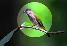 黑冠黄鹎:体长18-21厘米,是一种中等体型偏黄色鹎。整个头、颈、颏、喉黑色,头顶有显著直立的羽冠,黑色,上体褐橄榄黄绿色,下体橄榄黄色。虹膜偏红;嘴及脚黑色。…全部>>