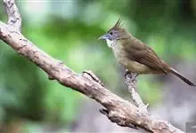 白喉冠鹎:体长20-25厘米。头顶红褐色,有长而细的羽冠、红褐色,头侧灰色。上体橄榄绿黄色,飞羽暗褐色,外翈茶黄色,尾下覆羽皮黄色。…全部>>