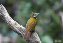 白喉冠鹎:体长20-25厘米。头顶红褐色,有长而细的羽冠、红褐色,头侧灰色。上体橄榄绿黄色,飞羽暗褐色,外翈茶黄色,尾下覆羽皮黄色。…全部>>