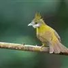 黑冠黄鹎:体长18-21厘米,是一种中等体型偏黄色鹎。整个头、颈、颏、喉黑色,头顶有显著直立的羽冠,黑色,上体褐橄榄黄绿色,下体橄榄黄色。虹膜偏红;嘴及脚黑色。…全部>>