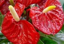 花烛,别名红鹅掌、红掌、安祖花等,为天南星科花烛属的一种多年生草本植物。其茎矮;叶互生,叶片革质,有光泽,阔心形、圆心形,先端钝或渐尖,基部深心形;肉穗花序有细长花序梗,佛焰苞深红色或橘红色,…全部>>