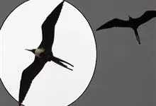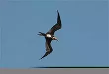 军舰鸟是鹈形目军舰鸟科军舰鸟属鸟类的通称,又称军人鸟。身体较小,腿又短又细,长有钩状嘴;翅膀细长,有很长的叉形尾巴。雄鸟体羽全黑,雌鸟大多数背部、头部和腹部为略带黑色的褐色,而胸部和腋距为白色。…全部>>