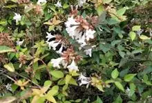 大花六道木,忍冬科六道木属半常绿矮生灌木。其幼枝为红褐色,有短柔毛;叶片倒卵形为墨绿色,有光泽;花粉钟形为白色;圆锥花序,开花繁茂;花期长,5~11月持续开花。…全部>>