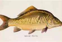 镜鲤是鲤形目鲤科鲤属鱼类。体形较粗壮,侧扁,头后背部隆起;头较小,眼较大;有颌须2对;鳃耙短小,呈三角形适中排列;尾鳍叉形;体表鳞片较大,沿边缘排列,背鳍前端至头部有一行完整的鳞片,…全部>>
