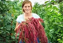千穗谷一年生草本;茎绿色或紫红色,分枝,无毛或上部微有柔毛。叶片菱状卵形或矩圆状披针形,具凸尖,基部楔形,无毛,上面常带紫色;叶柄无毛。圆锥花序顶生,直立,圆柱形,不分枝或分枝,由多数穗状花序形成,…全部>>