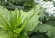 串叶松香草是菊科松香草属植物。多年生草本,根系发达粗壮,支根多,一般株高2-3米,最高的可达3.5米,茎实心,嫩时质脆含汁。叶色深绿,叶片宽大,一般长约60厘米左右,宽30厘米左右,最长叶可达97厘米。…全部>>