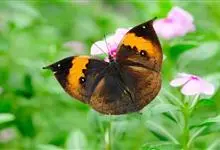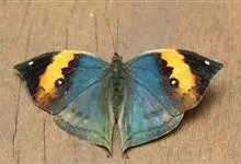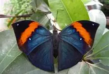 枯叶蛱蝶,又名木叶蝶、树叶蝶等,属于蛱蝶科。翅正面黑褐色,具深蓝色光泽,前翅顶角尖出,顶区有1枚小白点,中部有1条倾斜的橙色斑带,从前缘延伸至Cu室外缘,u室中部有1枚黑色圆斑,…全部>>