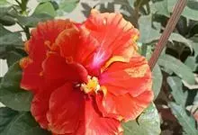 重瓣朱槿是锦葵科、木槿属常绿灌木植物;小枝疏被星状柔毛单叶互生,卵形或卵状披针形,基部圆形;叶柄长;托叶早落;花重瓣,较朱槿为大;花萼小,钟形,基部具有苞片多枚;花瓣多枚排列成彩球状,…全部>>