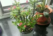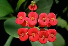 铁海棠为大戟科大戟属蔓生灌木植物;茎多分枝,具纵棱,呈旋转状;叶互生,通常集中于嫩枝上;每个花序基部边缘具微小的红色尖头;苞叶先端圆且具小尖头,无柄,上面鲜红色,下面淡红色;苞片丝状;子房光滑无毛,…全部>>