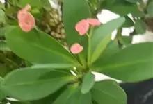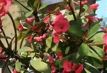 铁海棠为大戟科大戟属蔓生灌木植物;茎多分枝,具纵棱,呈旋转状;叶互生,通常集中于嫩枝上;每个花序基部边缘具微小的红色尖头;苞叶先端圆且具小尖头,无柄,上面鲜红色,下面淡红色;苞片丝状;子房光滑无毛,…全部>>