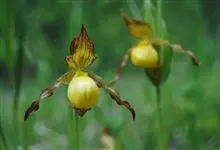 绿花杓兰:植株高30-60厘米,具较粗短的根状茎。茎直立,被短柔毛,基部具数枚鞘,鞘上方具4-5枚叶。叶片椭圆状至卵状披针形。花序顶生,通常具2-3花;花绿色至绿黄色;花瓣线状披针形,长4-5厘米,…全部>>