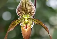 虎斑兜兰兰科,兜兰属地生或半附生植物。叶基生;数枚至多枚,叶片带形、革质。花葶从叶丛中长出,花苞片非叶状;子房顶端常收狭成喙状;花大而艳丽,有种种色泽;中萼直立,花粉粉质或带粘性,退化雄蕊扁平;柱头…全部>>