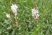 山桃草是柳叶菜科、山桃草属植物。多年生宿根草本。高60-100厘米,叶无柄,椭圆状披针形或倒披针形,花期晚春至初秋;多花型,花蕾白色略带粉红,初花白色,谢花时浅粉红。花紫红色,成密生的穗状花序,…全部>>