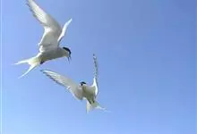 燕鸥是鸥形目鸥科鸟类动物。嘴形细长,嘴峰形直或几乎直形,不成弧状;脚短而细弱,趾间蹼不呈深凹状;尾较长,呈深叉状。羽毛一般呈灰色或白色,头上往往有黑色斑纹,身体轻盈,脚上长着蹼和防水的羽毛,…全部>>