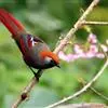 赤尾噪鹛中型鸟类,体长24~28厘米。头顶至后颈红棕色,两翅和尾鲜红色,眼先、眉纹、颊、颏和喉黑色,眼后有一灰色块斑。其余上下体羽大都暗灰或橄榄灰色。特征极明显,特别是通过鲜红色的头顶、翅和尾。…全部>>