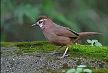 白颊噪鹛是雀形目噪鹛科噪鹛属鸟类,又称土画眉、小画眉、小噪鹃。成鸟额至头顶栗褐色,长眉纹、眼先和颊纹棕白色,眼后至耳羽深褐色,…全部>>
