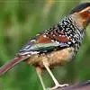 大噪鹛:中型鸟类,体长32-36厘米。额至头顶黑褐色,背栗褐色满杂以白色斑点,斑点前缘或四周还围有黑色。初级覆羽、大覆羽和初级飞羽具白色端斑。尾特长,均具黑色亚端斑和白色端斑。颏、喉棕褐色,…全部>>