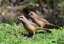 白颊噪鹛(白颊笑鸫、白眉笑鸫)雀形目 > 鸣禽亚目 > 画眉科 > 白颊噪鹛