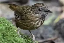 白腹幽鹛,是画眉科幽鹛属鸟类,共有4亚种。雕雄羽色相似。 上体从头到尾包括两题表面概为微椎褐色,两翅和尾沾更多红色。眼先和颚上灰褐色,耳覆羽褐色具族色羽轴纹,颈与背同色。额、喉白色具矢状黑斑,…全部>>