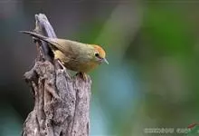金头穗鹛小型鸟类,体长10~11厘米,是一种黄色小鸟。头顶金黄色有黑色纵纹,眼先黑色,在头、颊和耳羽金黄色的衬托下亦甚醒目。上体橄榄黄色,下体亮黄色,腹和两胁沾绿。…全部>>