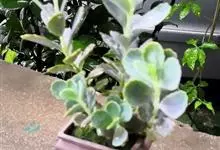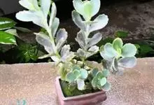 仙女之舞是景天科、伽蓝菜属植物。常绿肉质灌木,株高可达2-3米。幼株茎上有毛。叶有柄;单叶对生,阔卵状三角形,肉质;新叶开展,老叶正面凹、背面圆凸,缘具稀锯齿,橄榄绿色至灰绿色,被稠密的灰白色毛。…全部>>