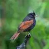凤头鹀:属小型鸣禽,体重21-31克,体长134-175毫米。以头顶的细长羽冠为特征,雄鸟全身几乎均为黑色具蓝色光泽,两翅和尾以及尾上覆羽栗红色。雌鸟具短的褐色羽冠,上体暗橄榄褐色,…全部>>