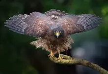 短趾雕:体长62-70厘米,体重1.2-2.3千克。它们的颔、颈和胸部上方呈浅棕色。头部浑圆像猫头鹰般,眼睛呈鲜黄色。身体沉重,上体灰褐,下体白而具深色纵纹,喉及胸单一褐色,腹部具不明显的横斑,…全部>>