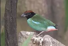 绿胸八色鸫:是雀形目八色鸫科的鸟类,共有12个亚种。体长为16-18厘米,体重65-69克。体型圆胖,尾短,腿长。头黑,上体绿色,两翼深色而具白色斑纹,头顶至后枕深褐,胸及腹部苹果绿,臀亮红。…全部>>