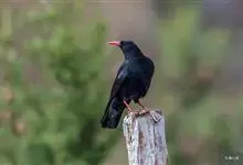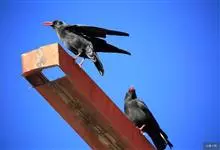 红嘴山鸦,是脊索动物门鸟纲雀形目鸦科鸟类。红嘴山鸦的成鸟通体羽毛纯黑色具有蓝色金属光泽,翼和尾泛有蓝绿色金属光泽;虹膜暗褐色,喙较为尖细,并且呈镰状下弯,喙和脚朱红色。…全部>>