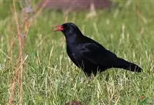 红嘴山鸦,是脊索动物门鸟纲雀形目鸦科鸟类。红嘴山鸦的成鸟通体羽毛纯黑色具有蓝色金属光泽,翼和尾泛有蓝绿色金属光泽;虹膜暗褐色,喙较为尖细,并且呈镰状下弯,喙和脚朱红色。…全部>>