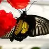 金裳凤蝶是凤蝶科、裳凤蝶属的动物。金裳凤蝶身体呈黑色,头、颈和胸侧有红毛,腹部有黑黄两色相间条纹,雄蝶前翅黑色,具黑天鹅绒光泽,各脉两侧灰白色,后翅金黄色,各室外缘有等腰三角形黑斑1枚,斑内侧有晕,…全部>>