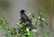 黑卷尾是雀形目卷尾科一属,又称铁练甲、铁燕子、铁林哥、羊蹄刺、榨油郎,体长约30厘米全身蓝黑色而具金属光泽,尾长且分叉较深。幼鸟似成鸟,金属光泽弱,下腹部具近白色的横纹。虹膜暗红色,嘴黑色,脚黑色。…全部>>