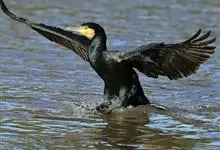 普通鸬鹚是属于鲣鸟目鸬鹚科鸬鹚属鸟类,又名水老鸦、鱼鹰、乌鬼、黑鱼郎等。体长720—900毫米,雌雄同型。通体黑色,有绿褐色金属光泽;喙厚重,喙基和喉囊橙黄色,脸颊及喉白色;夏羽颈及头饰具白色丝状羽,…全部>>