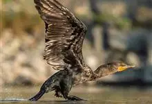 普通鸬鹚是属于鲣鸟目鸬鹚科鸬鹚属鸟类,又名水老鸦、鱼鹰、乌鬼、黑鱼郎等。体长720—900毫米,雌雄同型。通体黑色,有绿褐色金属光泽;喙厚重,喙基和喉囊橙黄色,脸颊及喉白色;夏羽颈及头饰具白色丝状羽,…全部>>