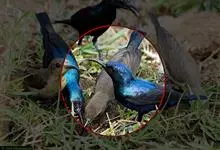 褐翅鸦鹃,是鹃形目鸦鹃科鸦鹃属的鸟类。褐翅鸦鹃的身体为黑色;头颈和胸带蓝紫色金属光泽并具黑亮的羽干纹,下胸至腹部泛金属绿光泽;两翼和肩部为棕栗色,外侧飞羽具暗色羽端,尾羽闪铜绿色光泽;虹膜赤红色,…全部>>