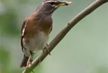 白眉鸫,是脊索动物门鸟纲雀形目鸫科鸫属中等体型的灰褐色鸫类。雄鸟头、颈、顺部至上颈灰色,具白色眉纹和下眼圈,眼先深色,上背至尾上覆羽橄榄褐色,上胸和两胁栗褐色,下胸、腹部和尾下覆羽白色,…全部>>