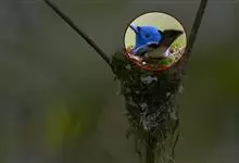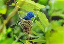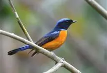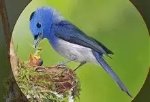 棕腹大仙鹟:体重24-28克,体长15-17厘米,是一种小型的色彩亮丽的鹟。雄鸟上体深蓝,下体棕色,脸黑,额、颈侧小块斑、翼角及腰部亮丽闪辉蓝色。与棕腹仙鹟易混淆,区别在色彩较暗。雌鸟灰褐,…全部>>