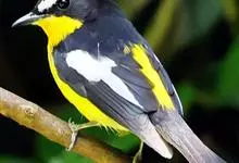 白眉姬鹟是小型鸟类,体长11-14厘米。雄鸟上体大部黑色,眉纹白色,在黑色的头上极为醒目。腰鲜黄色,两翅和尾黑色,翅上具白斑。下体鲜黄色。雌鸟上体大部橄榄绿色。腰鲜黄色,翅上亦具白斑。下体淡黄绿色。…全部>>